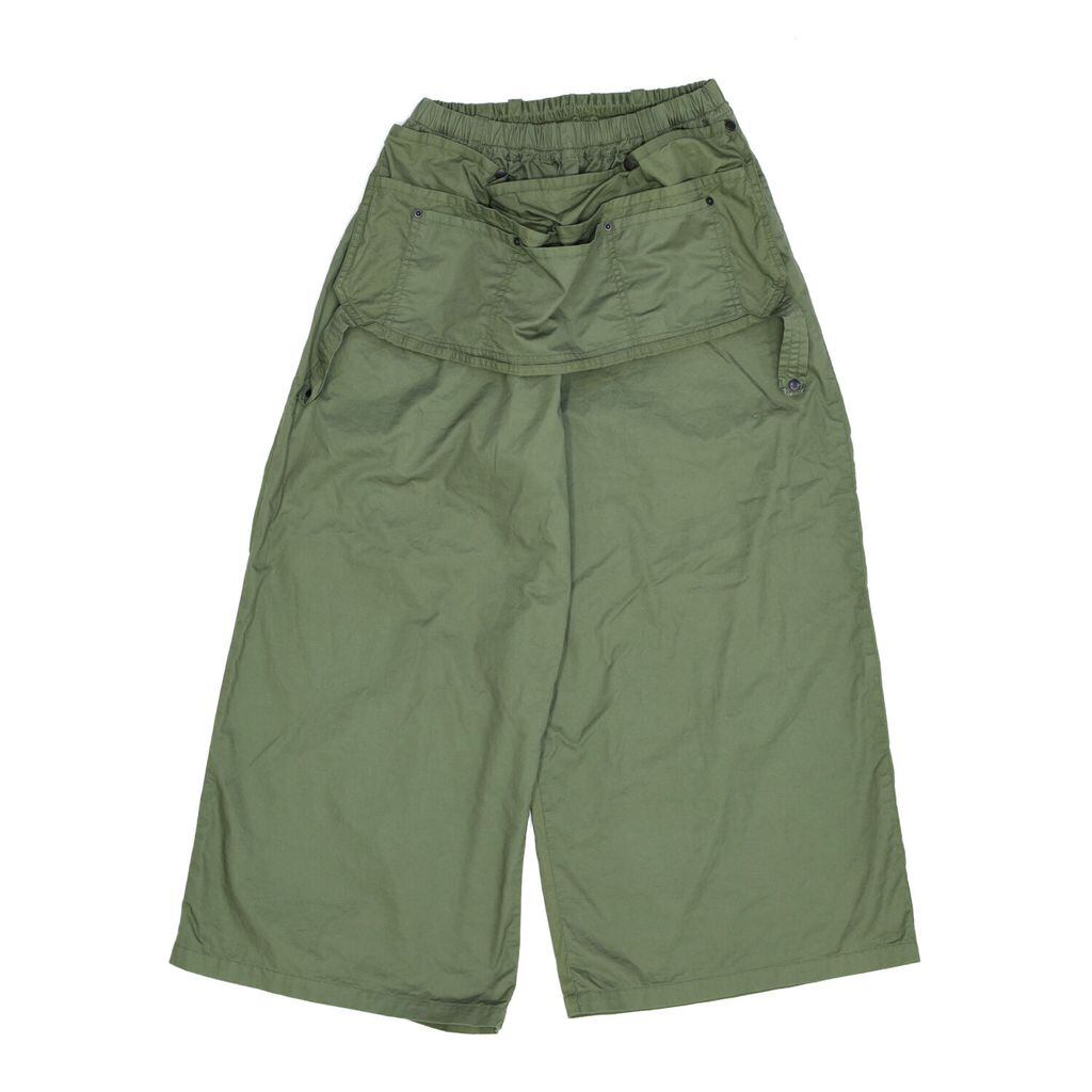 エプロン部分は取り外し可能となっており、シンプルなワイドパンツとしても使えるため、コーディネートに取り入れやすいアイテムです。