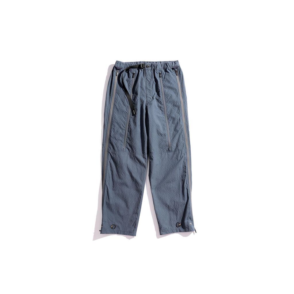 表地に撥水加工を施したCORDURA®混コットンリップストップ素材を使用した変形トラックパンツ。前身頃の左右・両脇にロングファスナーを付属、開閉幅を調整することで自在な着方を可能にするデザイン。背面右ポケット下にスクウェア型ネームを配置、ネーム下にCORDURA®ロゴをエンブロイダリー。サイドジッパーの内側上部にスラッシュポケット(左右にマルチ内ポケット付き)
