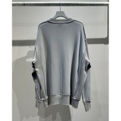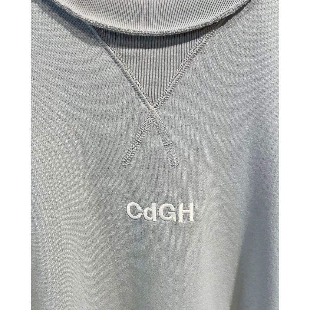 本来裏側に来るステッチをあえて表面に出したインサイドアウトのテクニックで作られたスエットは各パーツに現れた立体的なステッチが全体のアクセント。フロントにはCOMME des GARCONS HOMMEのイニシャルである「CdGH」のグラフィックを刺繍にてプラス。インサイドアウトの個性的なクルーネックのスエットのワンポイントアクセントとなっています。またシルエットにはゆったりとした身幅が特徴となったリラックス感のあるデザインを使用。シンプルなクルーネックスエットにデザインのアクセントが加えられた個性的な一枚です。