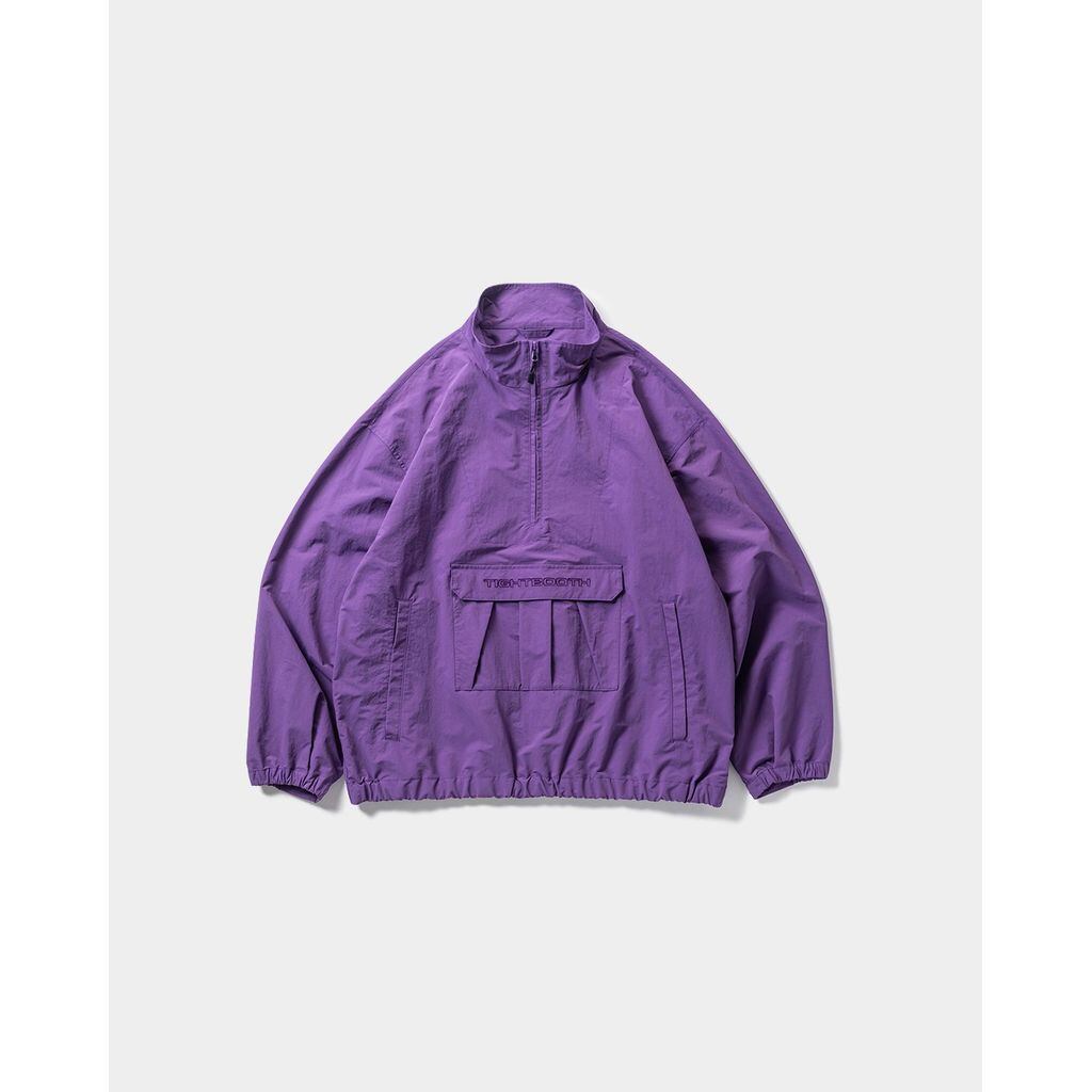 塩縮加工が施されハリ感の強いナイロンリップストップ生地を使用したプルオーバージャケット。