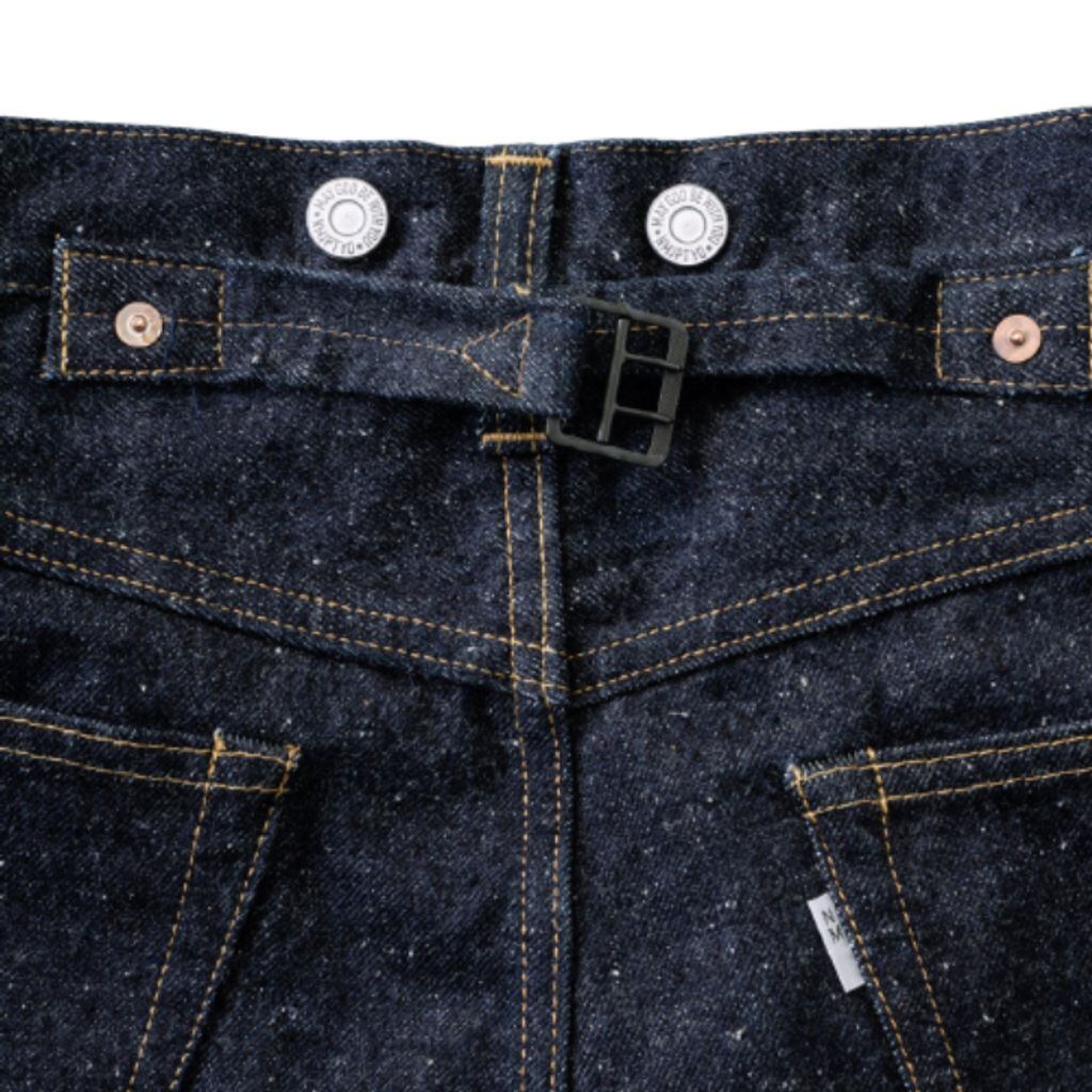 藤原の持つデニムの中で最も古いモデルとなる、1941-1942に作られた5PKTデニムパンツがベース。まさに#001と上下で組みとなるパンツで、セットで揃うことがほぼない希少なアイテム。パターンは当時をベースにしながら藤原として、より日本人の体型にフィットさせるべく、オリジナルの尻ぐりを修正。食い込みが出ないよう、ゆとりをもたせた。股上はやや深めで、渡りから裾まで薄いテーパードのかかったまっすぐなシルエット。これをNew Manual #002とする。
