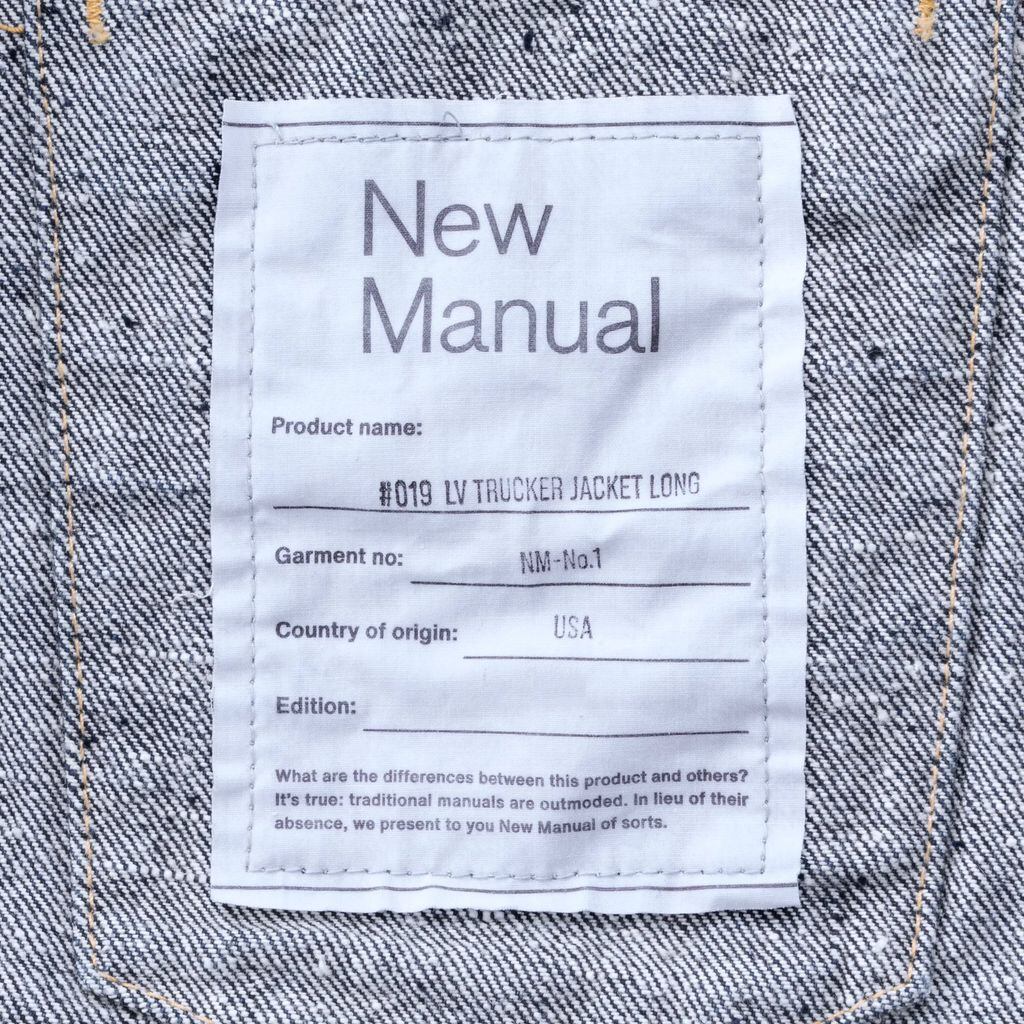 今や定番の形となった1961年登場のデニムジャケットの中でも、着丈が長いレアなモデルをベースにしている。オリジナルの持つ絶妙な着丈は踏襲しながら、袖の長さや二の腕の太さを改善。後身頃のシェイプされたラインは緩めてボックスシルエットに近づけるなど、細部の調整を施した。ベースのジャケットは44サイズだが、サイズ感は48サイズに近づけている。これをNew Manual #019とする。