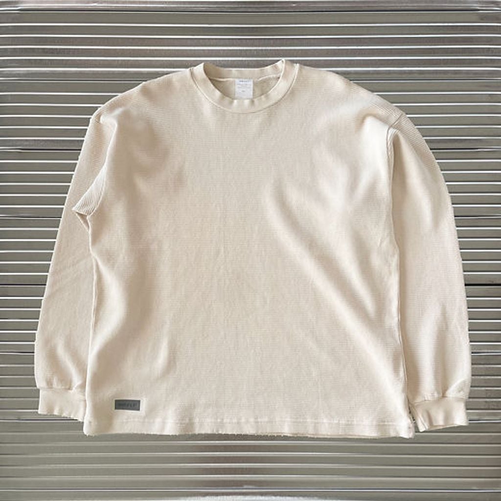 約11.5オンスのヘビーウェイトサーマル、通常のサーマルよりもしっかりとした厚みで、秋冬のレイヤードスタイルに最適。ゆったりとしたシルエットで、インナーとしても1枚でも抜群の着心地。もちろん素材は高品質なUSAコットンを使用し、耐久性と快適さを両立させました。裾にはMINEオリジナルダクトテープが施されています。
