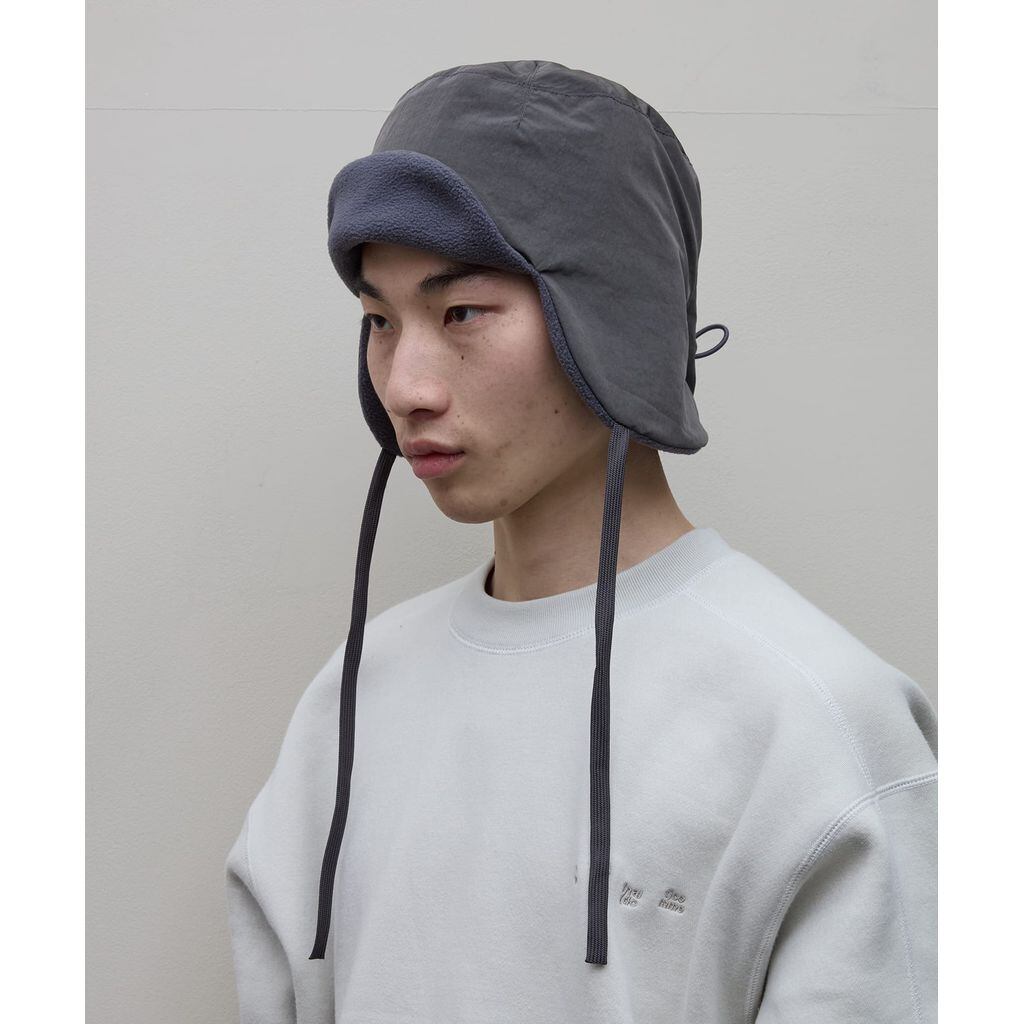 フリース素材のイヤーフラップ付き6パネルタイプのベースボールキャップ。