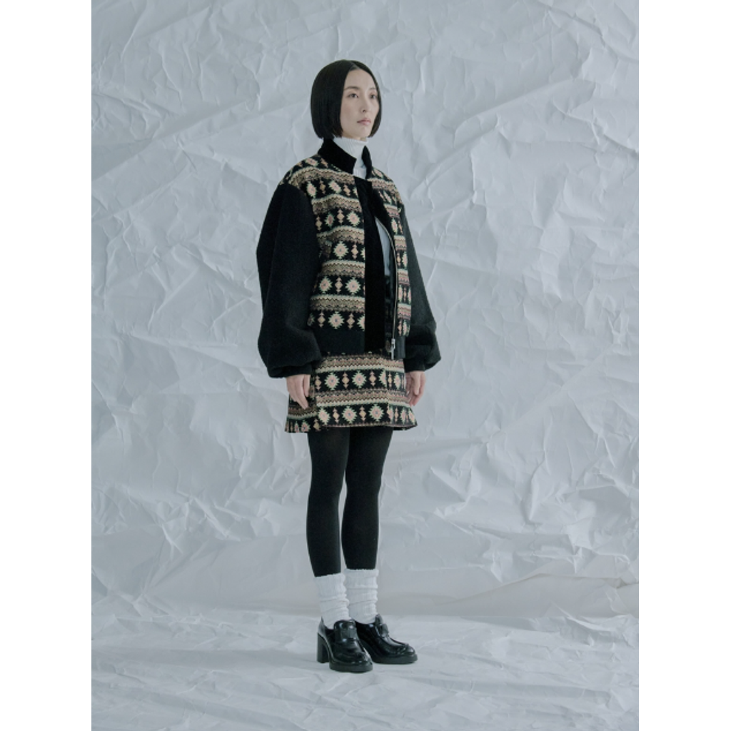 リッチなゴブラン素材と別素材の袖が組み合わさったブルゾンになります。