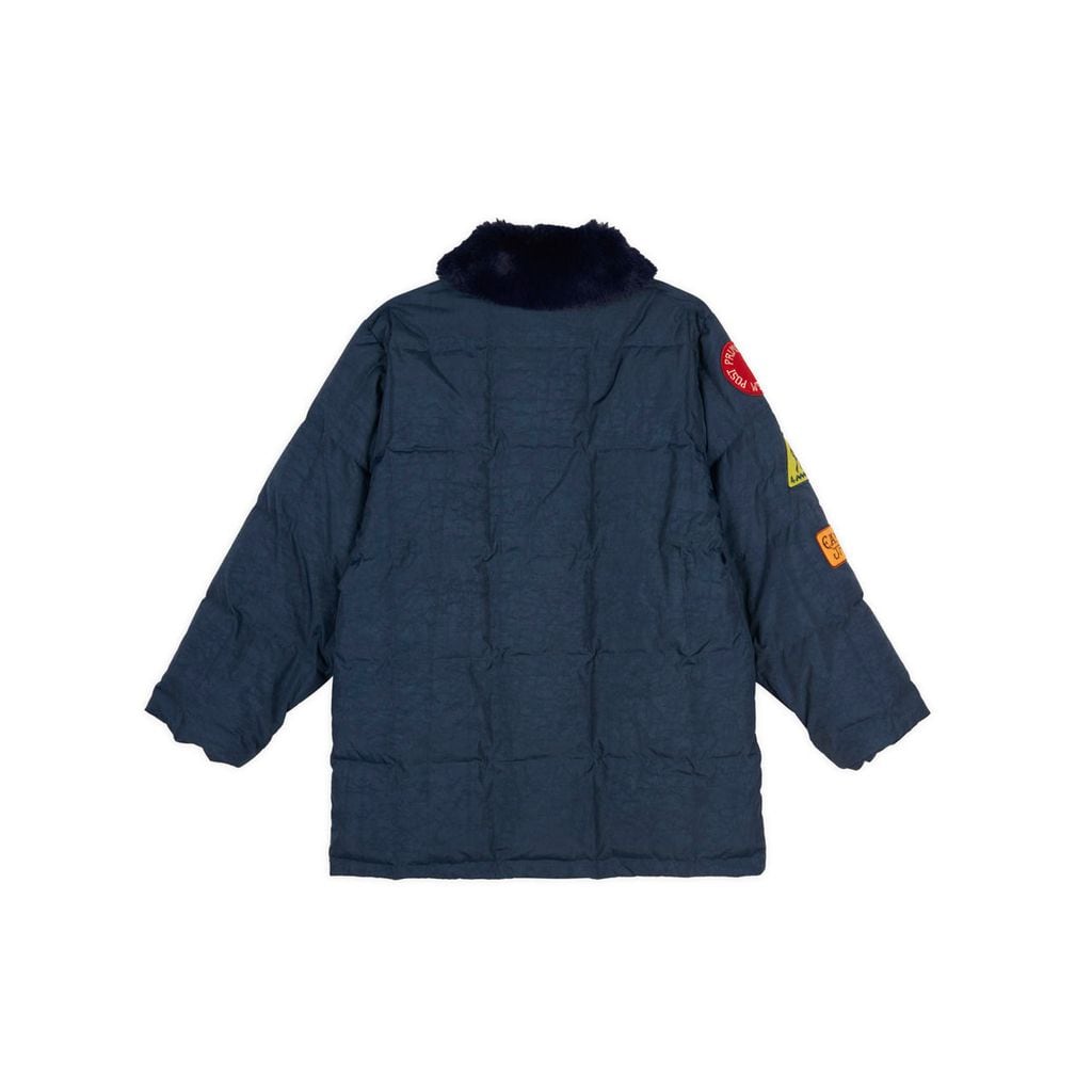 ジッパーとボタンで開閉し、腕にフェルトパッチが施され、撥水樹脂仕上げが施されたナイロンアルパインジャケットです。別々に取り外し可能な襟とフードが付属しています。