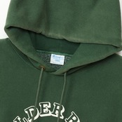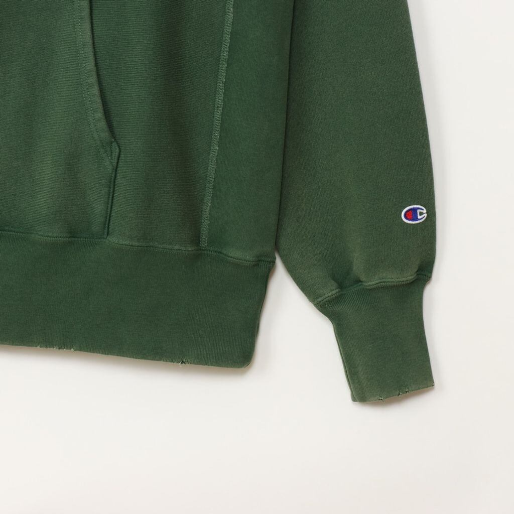 チャンピオンを代表する製法の「REVERSE WEAVE®(リバースウィーブ®)」。洗うほどにタフになり、着こむほどに独特の風合いや味が出る裏起毛素材を使用した「REVERSE WEAVE® 11.5oz. Terry Fleece(リバースウィーブ® 11.5オンス テリーフリース)」のフーデッドスウェットシャツです。本来は縦方向に使われる生地を横方向に使用する「REVERSE WEAVE®」製法によって縦の生地の縮みを防ぐと同時に、両脇に「EXPANSION GUSSET(エクスパンションガゼット)」を付けることで横の縮みへの影響を少なくし、動きやすさに配慮しています。