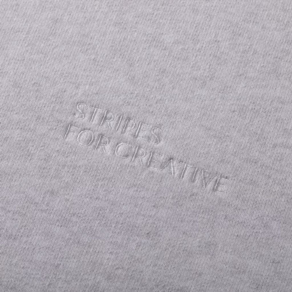 SFC定番のオーバーサイズクルースウェット。首元にオリジナルストライプ柄の刺繍を施したVガゼットを取り付けUPDATEしています。