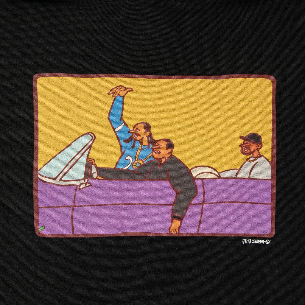 西海岸を代表するラッパーであり最も影響力のあるプロデューサーとL.A.ロングビーチを代表する重鎮ラッパーのミュージックビデオのワンシーンを落とし込んだスウェットパーカー。