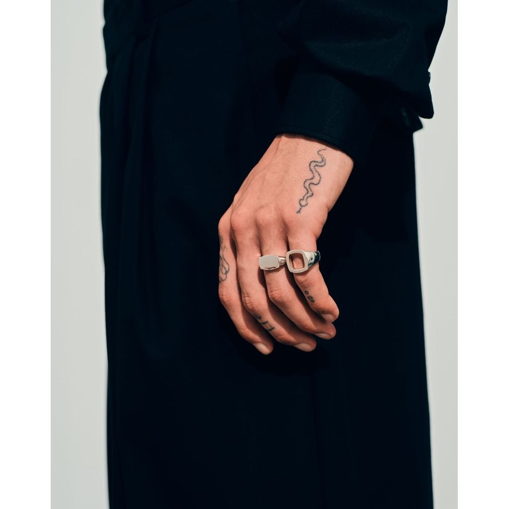 マイケル・リングは、ミディアムサイズのシグネットリングで、クラシックなクッション・リングに新しいテイストを加えたものです。単体でも、他のトムウッドのリングと合わせてもお使いいただけます。