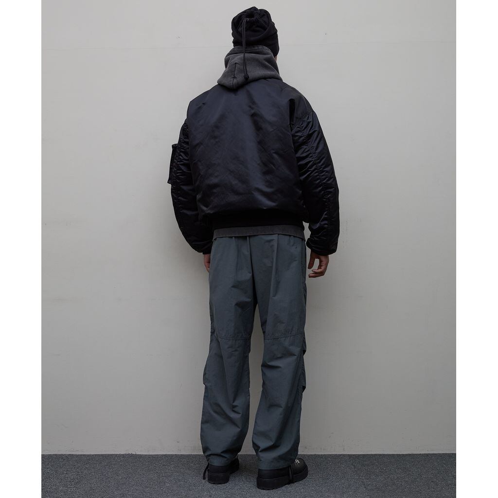 米国発ミリタリー・ワークウエアブランド〈SPIEWAK〉との協業企画。特徴的なダブルジップフロントのMA-1タイプボンバージャケット。ヴィンテージヘビーナイロンツイル素材にシンサレート中綿。リバーシブル。