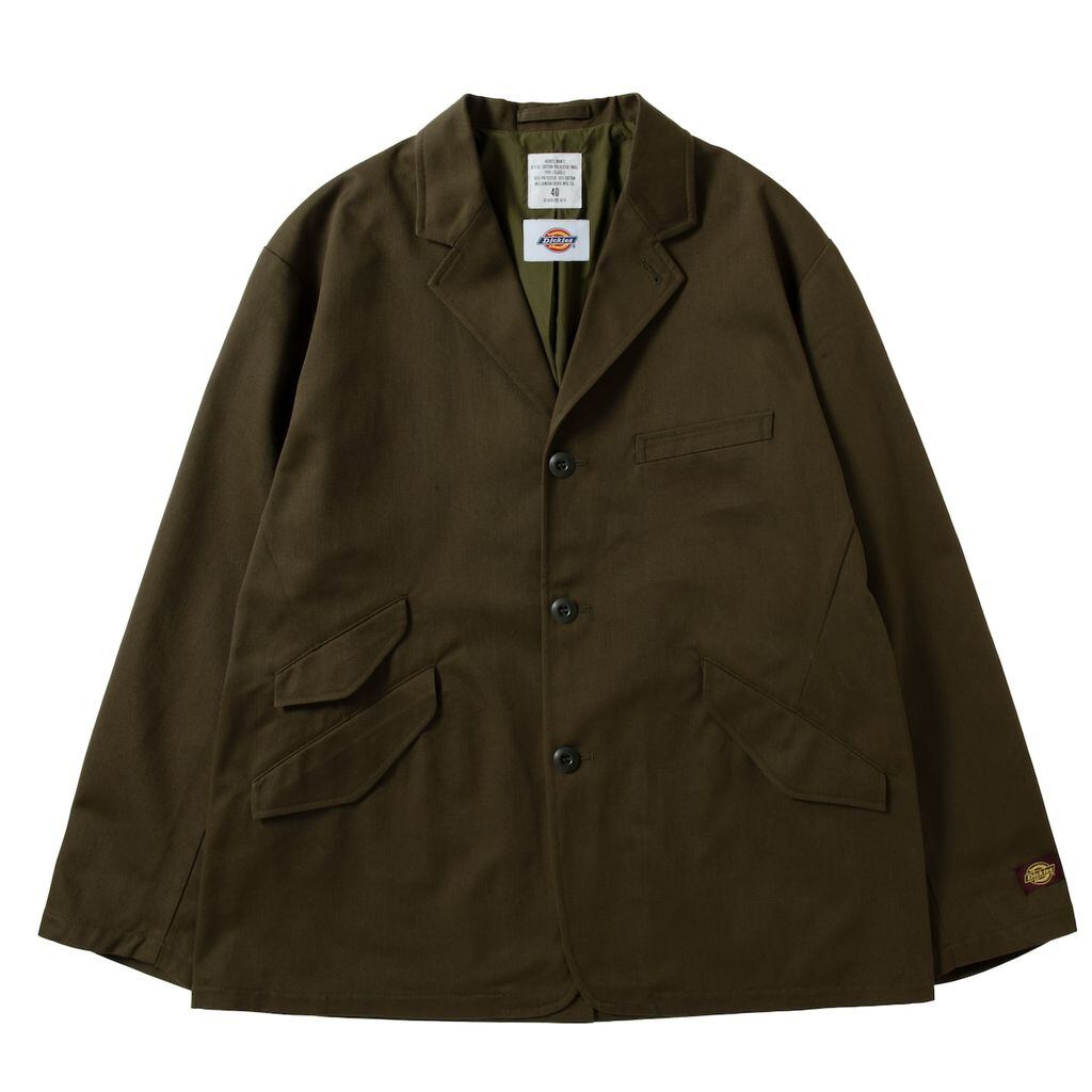 Dickies特有のポリエステルxコットンの生地を使用し、ジャケットの裏地にはミリタリーリップストップを使用、パンツはビンテージ市場でも貴重な50年代のUS AIR FORCE で採用されたメカニックパンツをモチーフにコラボレーションで製作しました。