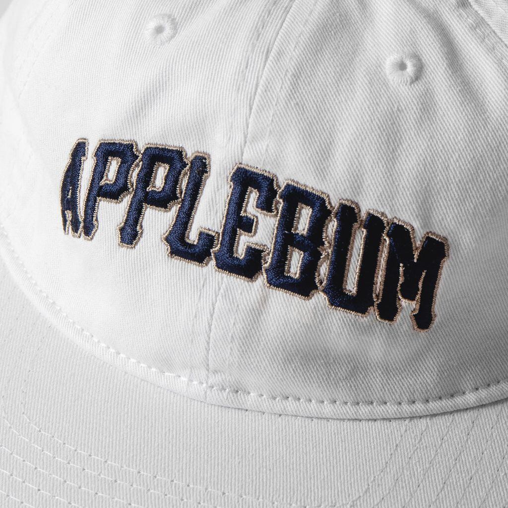 カレッジ風に仕上げたアーチロゴをフロントに刺繍したキャップ。