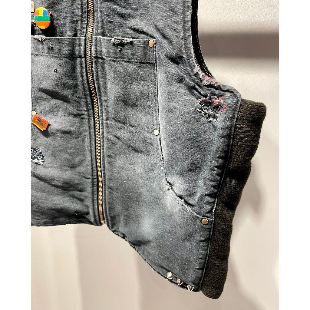 端破れダメージや特殊ブリーチ、ブラスト加工を駆使して全体に時代感と奥行きを表現した逸品となります。