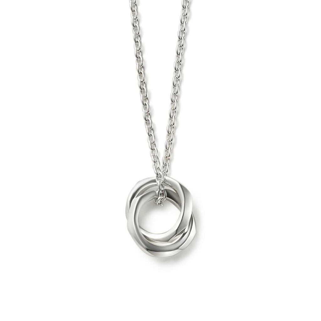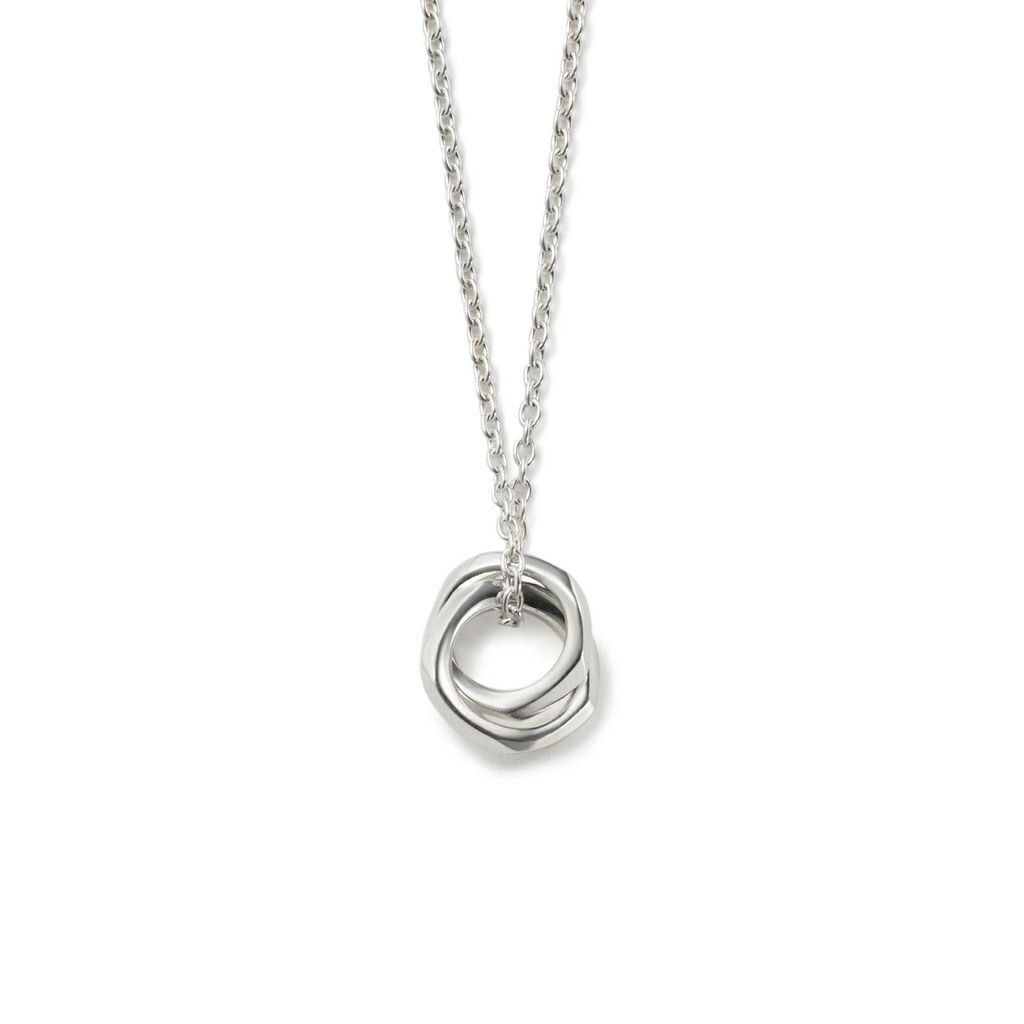 造形美あふれる組み重なった2連リングで2人の絆を表現し、独自のカッティングを施したペンダントです。
