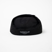 表地に撥水性に富むポリエステル素材、裏地には中綿入りポリエステル素材のキルティング生地を使用したボンバーキャップ。