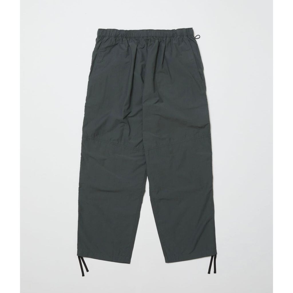 伸縮性のあるウエストバンドに樹脂製バックルとウエビングベルト。