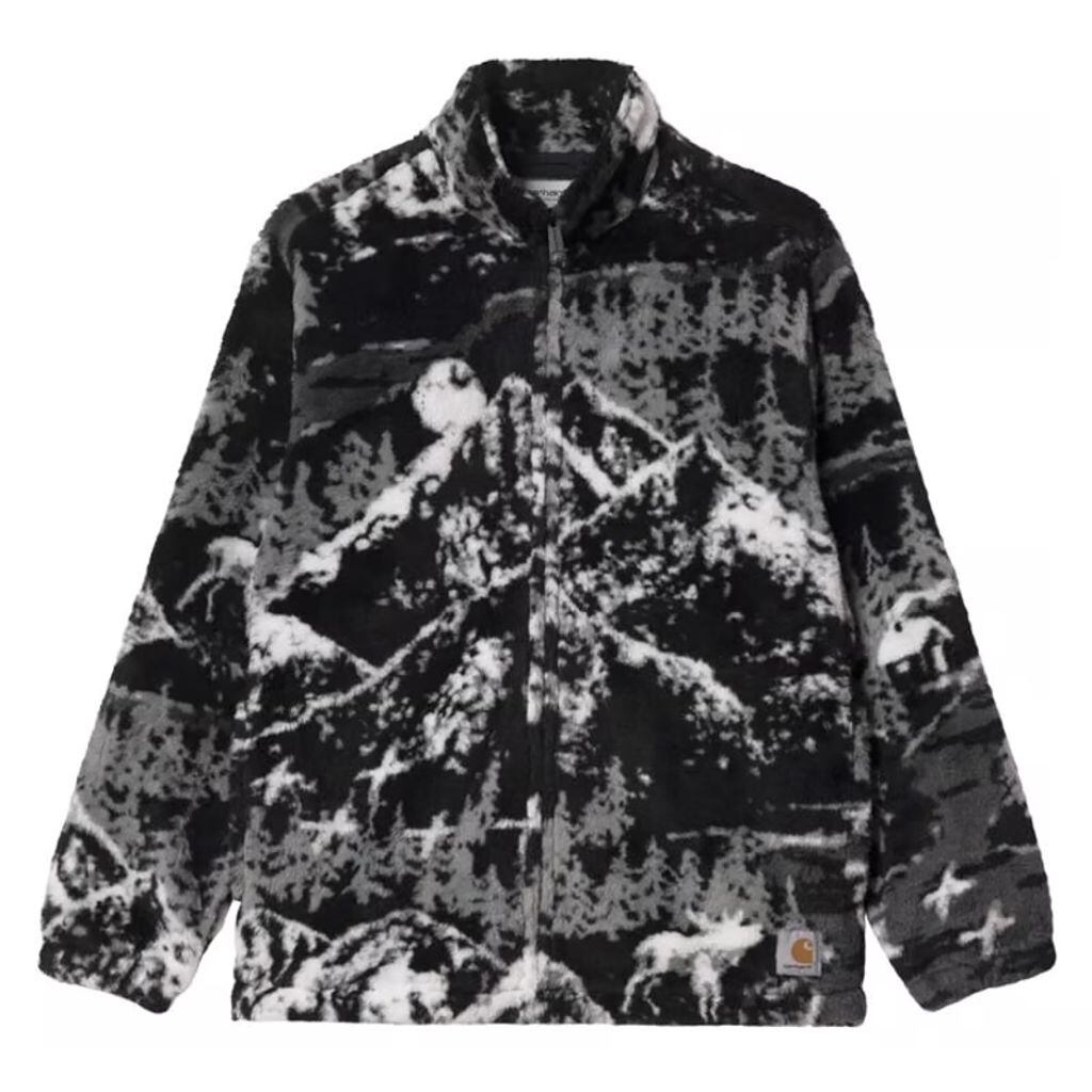 FW21のグラフィックを総柄でインストールしたフリースジャケット、ハイプレインズライナー。内側はメッシュライナー。ボトムはドローコードで調整可能。ジップは2way zip。保温性も高いパイル生地を使用しています。