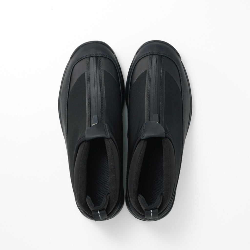 雪寒地用シューズの製造ノウハウをデイリーユースに。アウトソールには、氷上でも滑らないシロクマの足裏からヒントを得たガラス繊維配合ラバーを搭載し優れたグリップ力を発揮。ア ッパーは、着脱しやすいジッパーを搭載しながら、撥水加工を施したマテリアルで甲周りを覆った防水設計。氷上活動で必要な要素をシックな佇まいに整えたブーティタイプ。