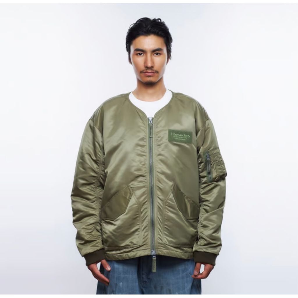 ナイロンツイル素材を使用したノーカラーのフライトジャケット。