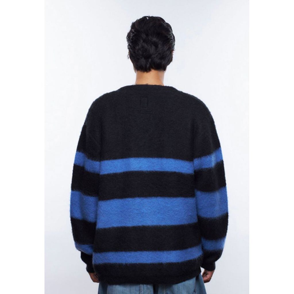 シャギーニット素材を使用したボーダーのカーディガン。
