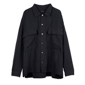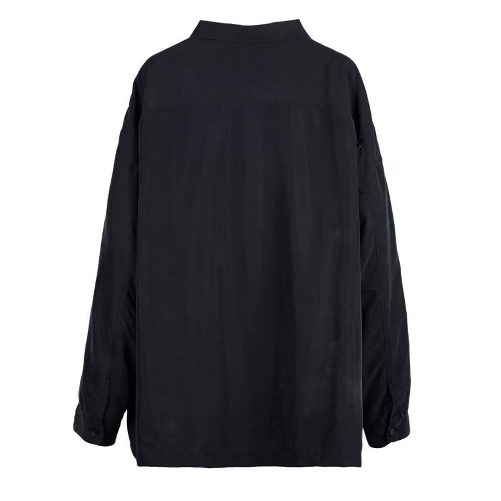 フロント肩口、背面ヨーク両サイドにプ リーツ、左腕にピスネームを付属。袖口のボタンでシル エット調整が可能。身幅にゆとりのあるシルエット。