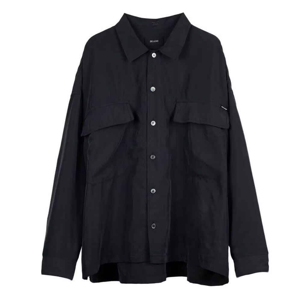 レーヨン/ポリエステルの混紡素材を使用した 50s シャツ。フロント胸元に 2 個フラップポケットが配置されたデザイン。