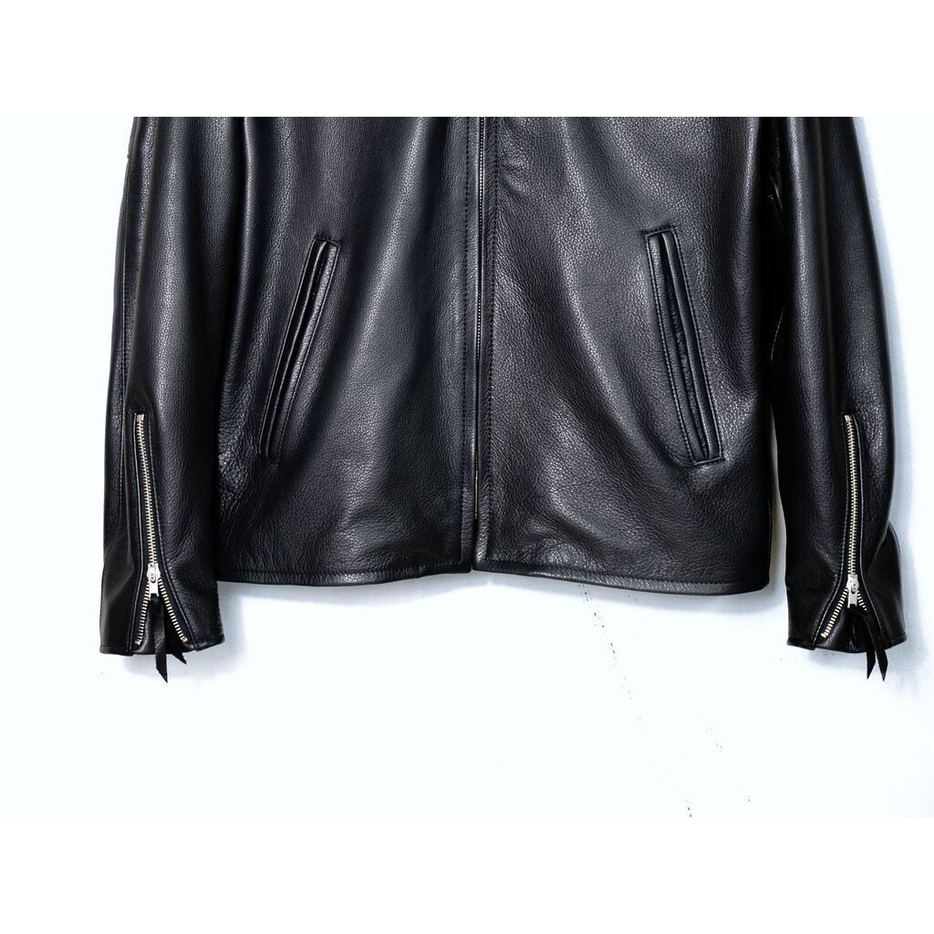 1960年代におけるトラックレースの流行から生まれた、シングルライダースジャケットをベースに、昔ながらのドラムにて厳選したレザーを職人が水と染料で手間暇かけて仕上げたレザーを使用し製作。