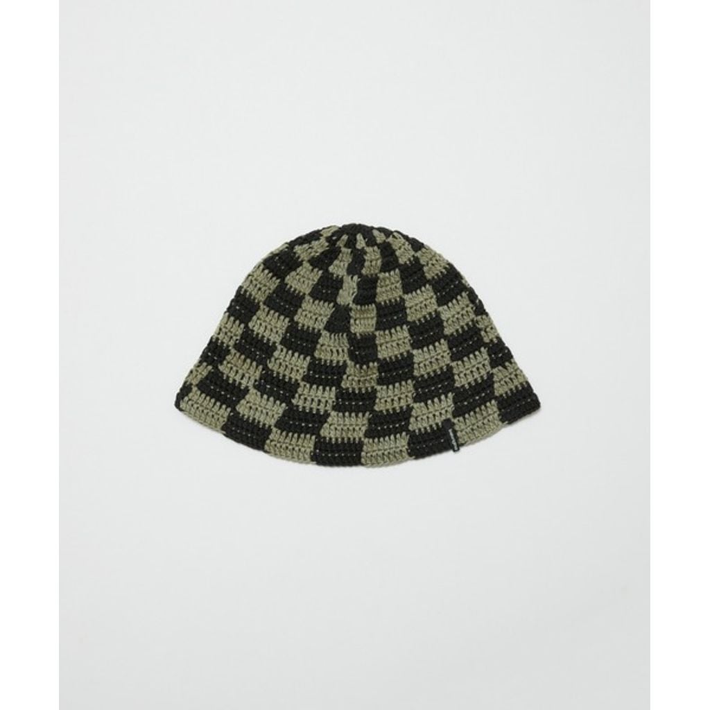 ミドルゲージのニットバケットハット。ハンドメイド。コットン。チェッカーパターン。ネパール製。