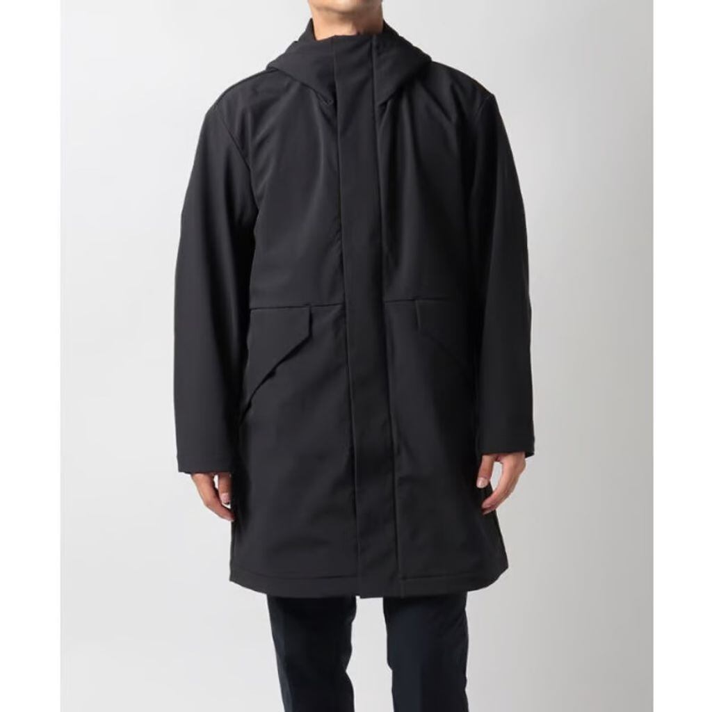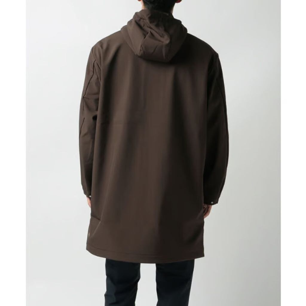 ボンディング加工により型崩れにも強いフーデッドオーバーコート。