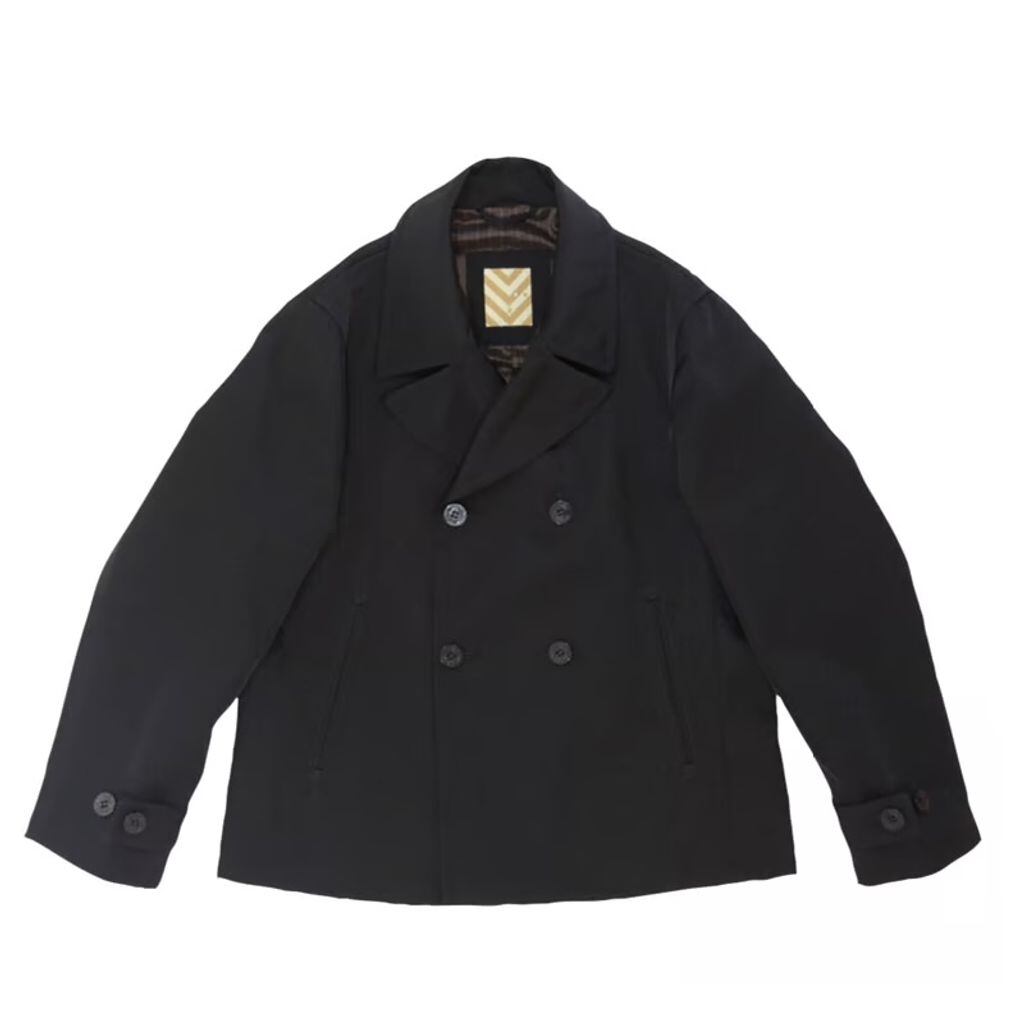 ツイル特有の光沢感が融合したハイグレードな素材。 ナイロン = スポーツ&カジュアルというイメージを覆す仕上がりのジャケットです。 前立てをダブル仕様にする事で、P コートの要素も入った独特な空気感。