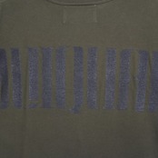 ランダムに生地をつまみ重なる部分だけを顔料染めしたボディに半透明のラバー樹脂プリント、 背面ヨーク部分にビッグロゴをシルクプリントで施したデザイン。