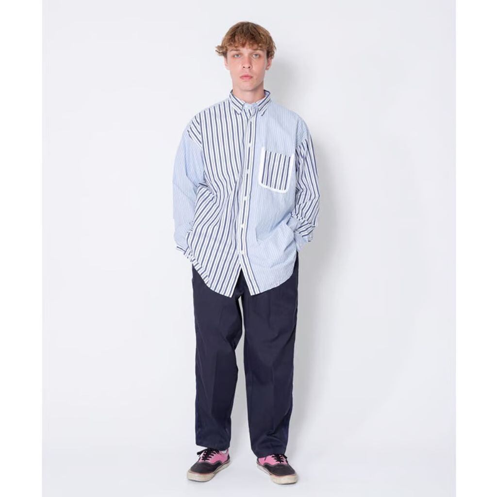 BEDWINの定番アイテムBDシャツをゆったりとしたコートライクなシルエットにアップデート。左胸ポケットに施した圧着テープがアクセントになっている。