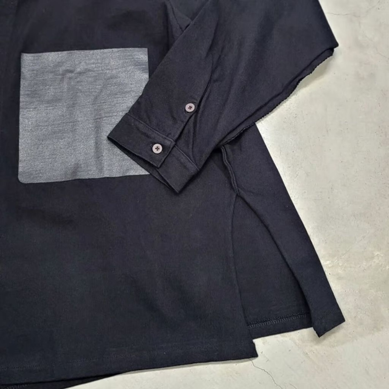 ラガシャツを思わすヘヴィー天竺を用いつつ、ディテールはシャツのソレを感じさせる仕上がり。
