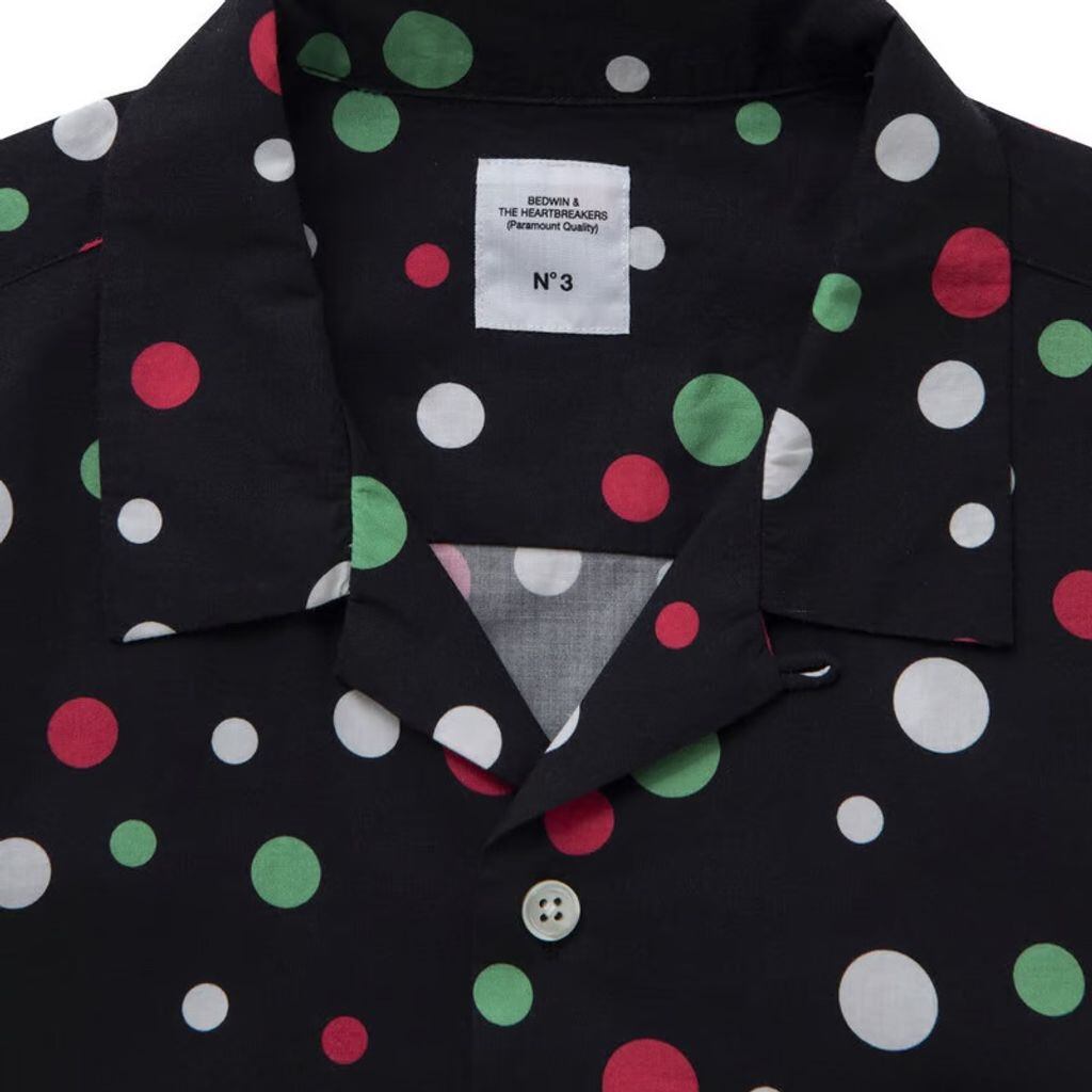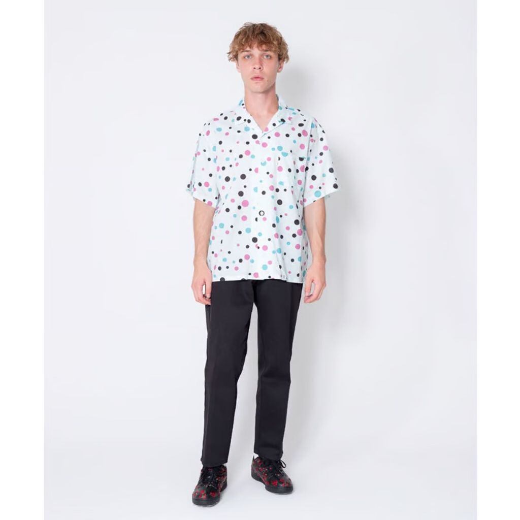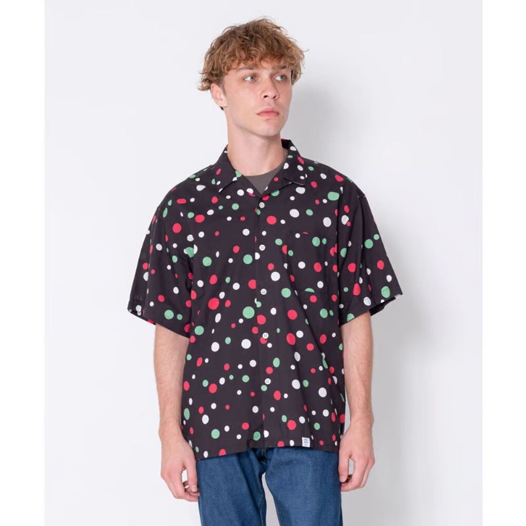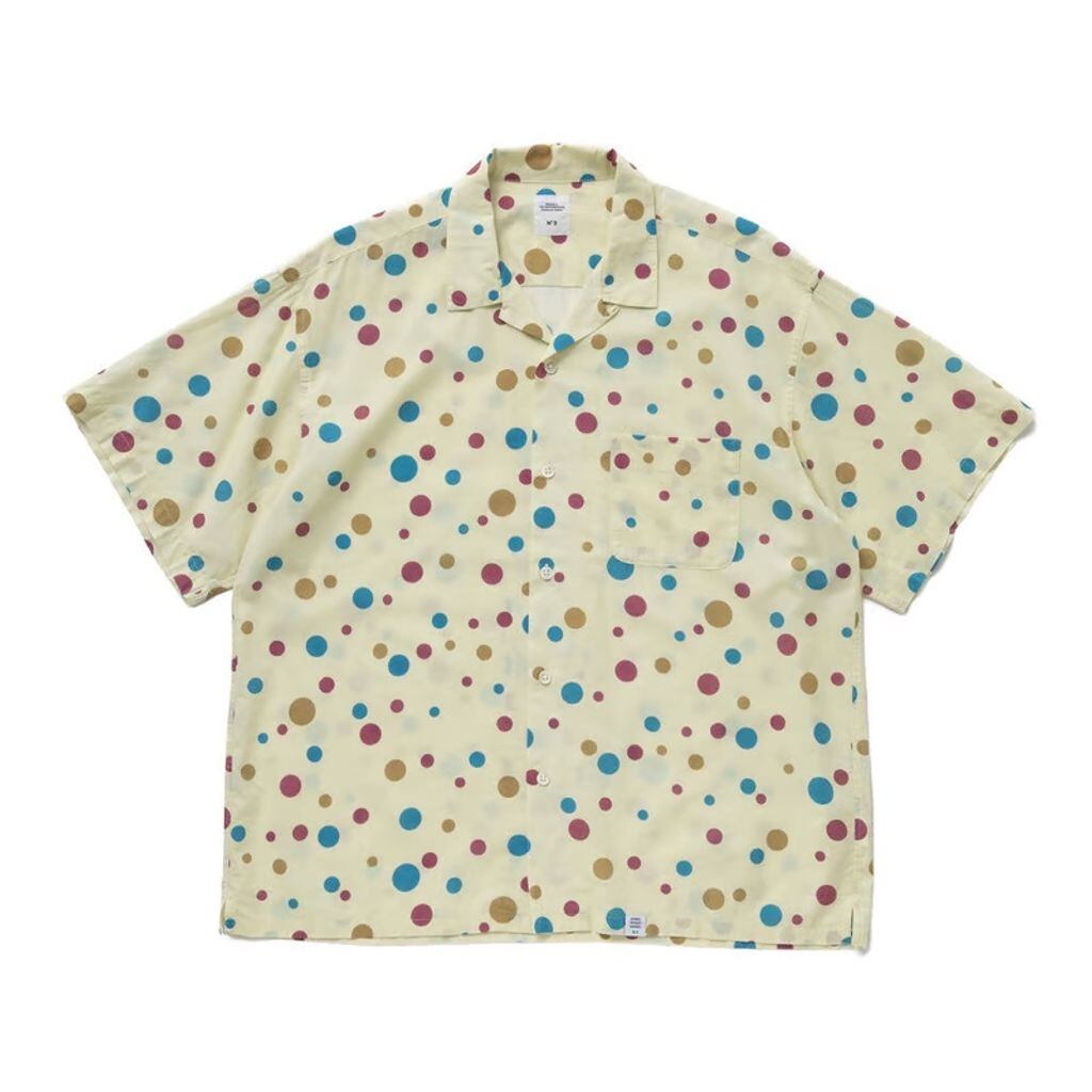 サイズ、色の異なるドットを全面に散りばめたカラフルでインパクトのある柄を採用することで遊び心のあるアイテムに仕上げている。BIG FIT
