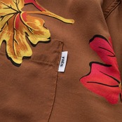 ボディ全体にカエデ柄をプリントで落とし込んだデザイン。第一釦留めにルーパーを付属したオープンカラー仕様、袖はシングルカフ、左胸にパッチポケットを配置したクラシックな意匠が盛り込まれたデザイン。