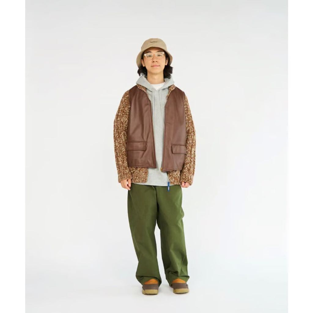 地方のとある古着屋で見つけたブランド名も不明のレザーベストを元ネタに、カラーや素材をアップデート。