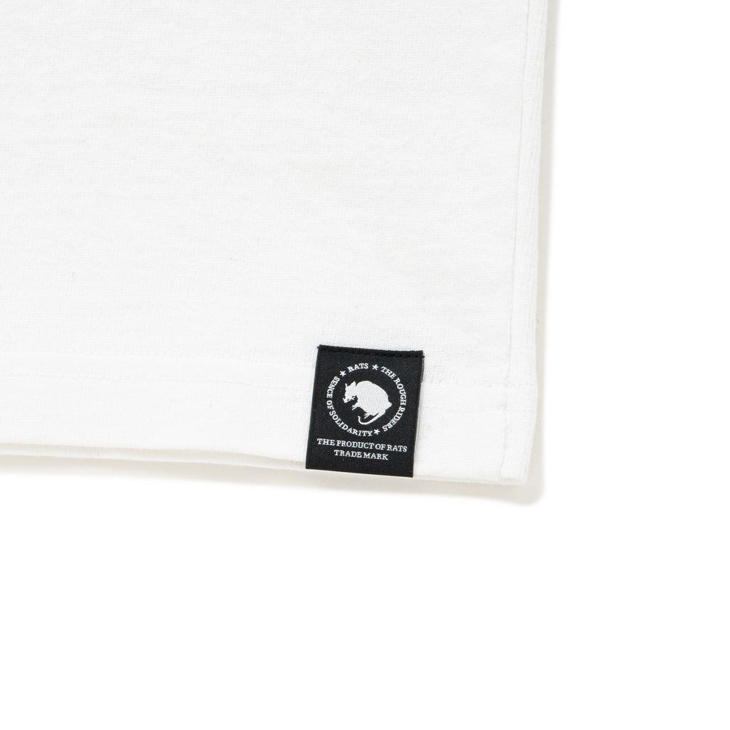 ヘビーウェイトなコットン天竺素材を使用したショートスリーブTシャツ。両者のロゴと象徴的なモチーフをプリント。背面裾口にピスネームを付属。RATS設立20周年を記念したコラボレーション。