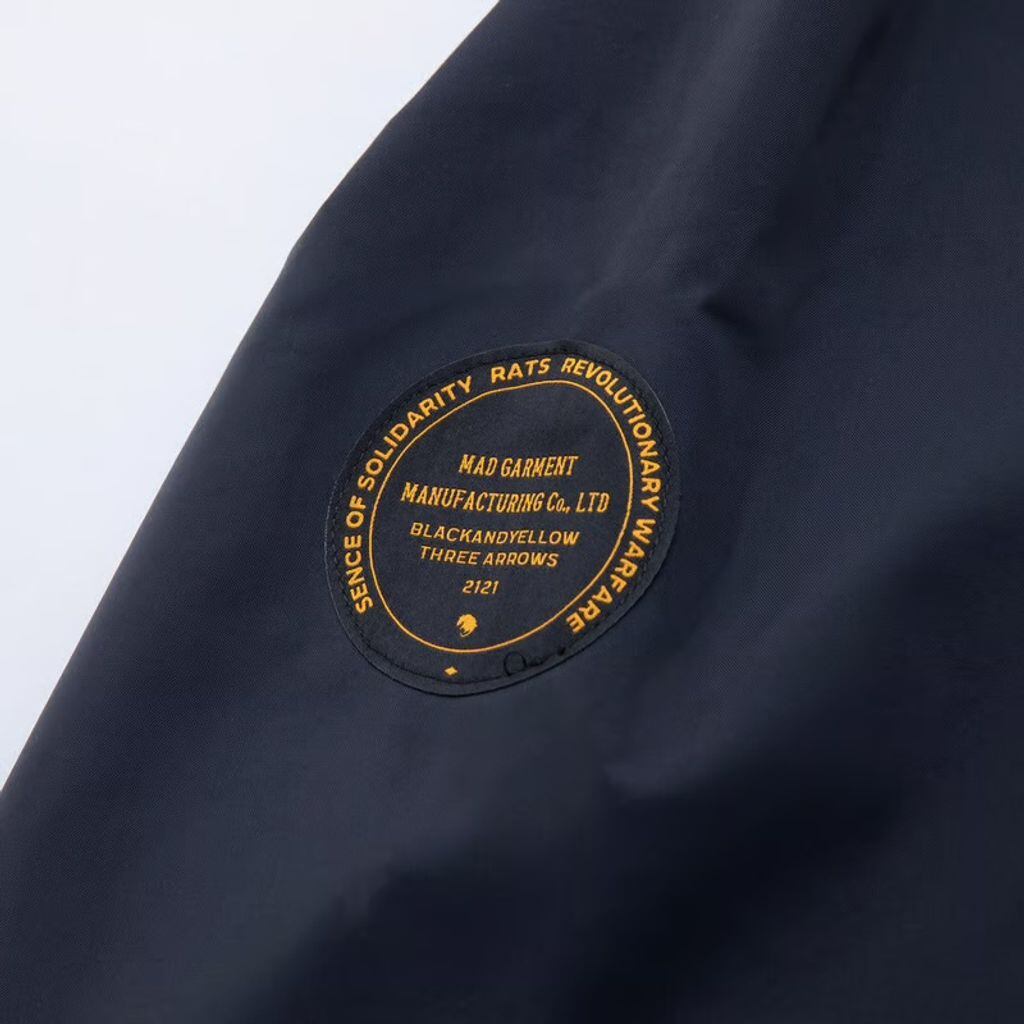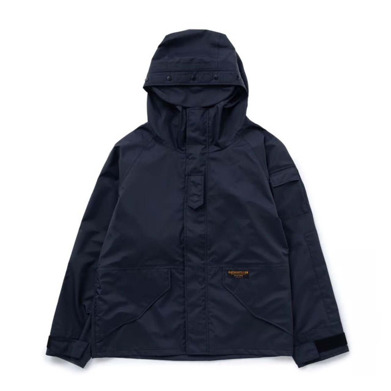 ECWCSパーカをベースに、3レイヤーのナイロン素材でモダナイズさせたフライトパーカ。腰の左右にフラップポケット、左肩に小振りなフラップポケット、比翼にコード用フラップを配置、右肩にサークル型ワッペンを叩きつけたデザイン。フードにはブリム、フード縁にはスナップボタン、袖口にはベルクロを付属した仕様。裏面は“SENSE OF SORIDARITY”のネームをプリントしたシームテームで構築されている。ツーリング、キャンプ、スノーボード、フィッシングなど天候に左右されるシチュエーションで高い撥水パフォーマンスを発揮するアイテム。1色5サイズ展開。