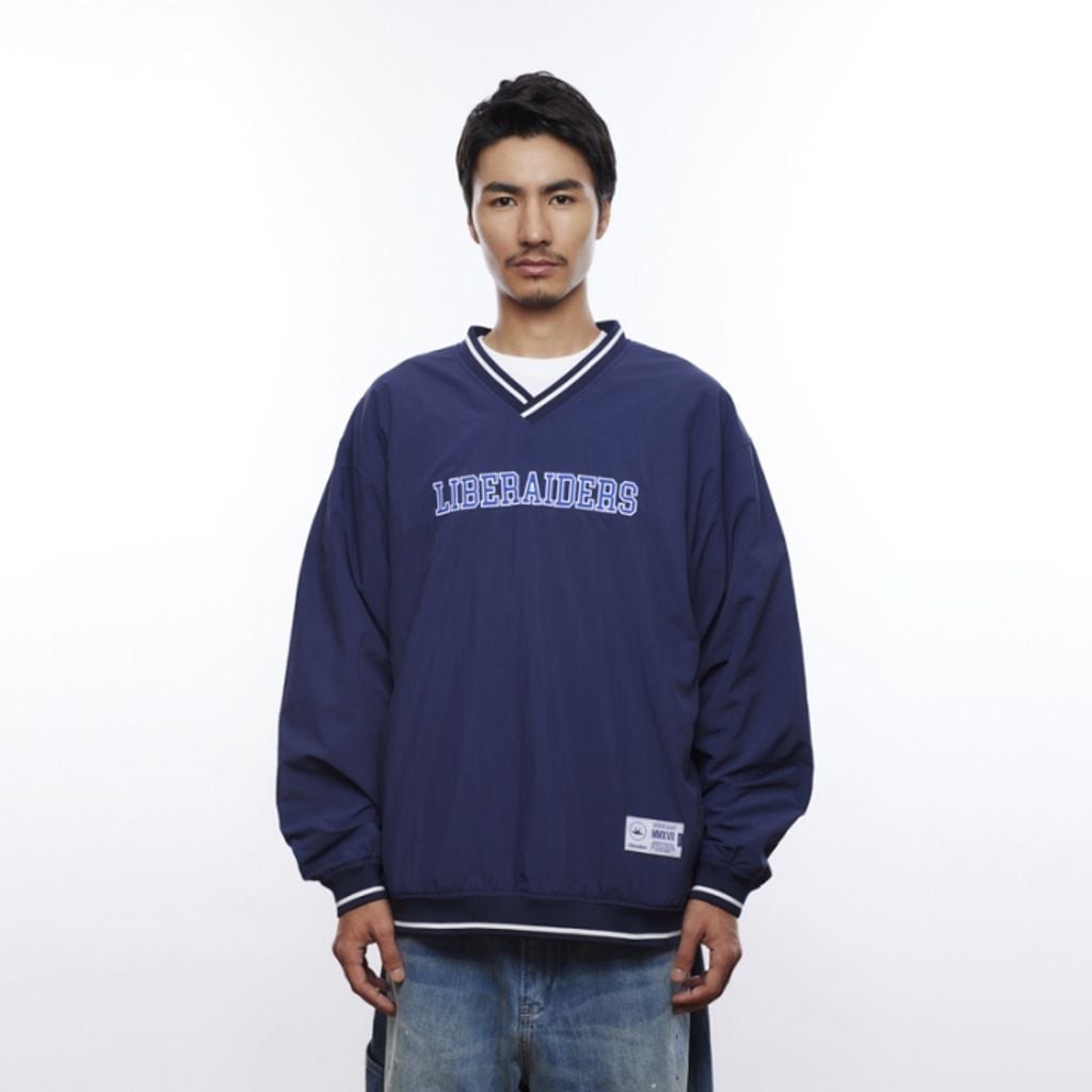 フロントにLiberaidersのカレッジロゴ刺繍が入ったVネックプルオーバー。