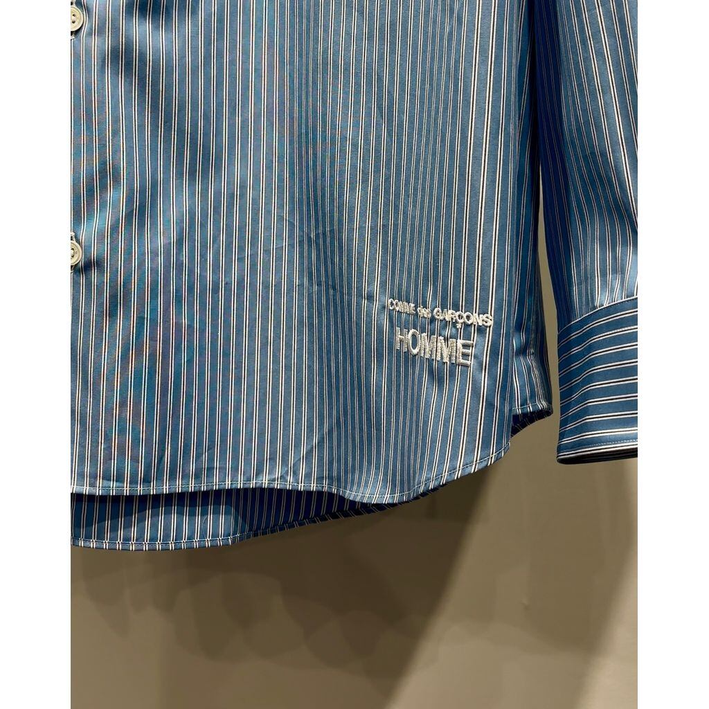 COMME des GARCONS HOMME コットンストライプ LOGO シャツ(BLUEベース)