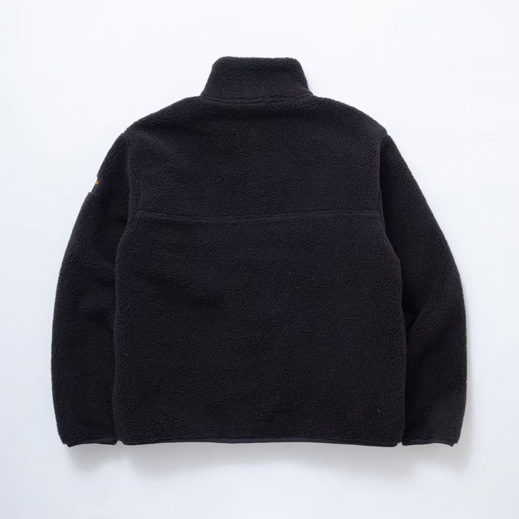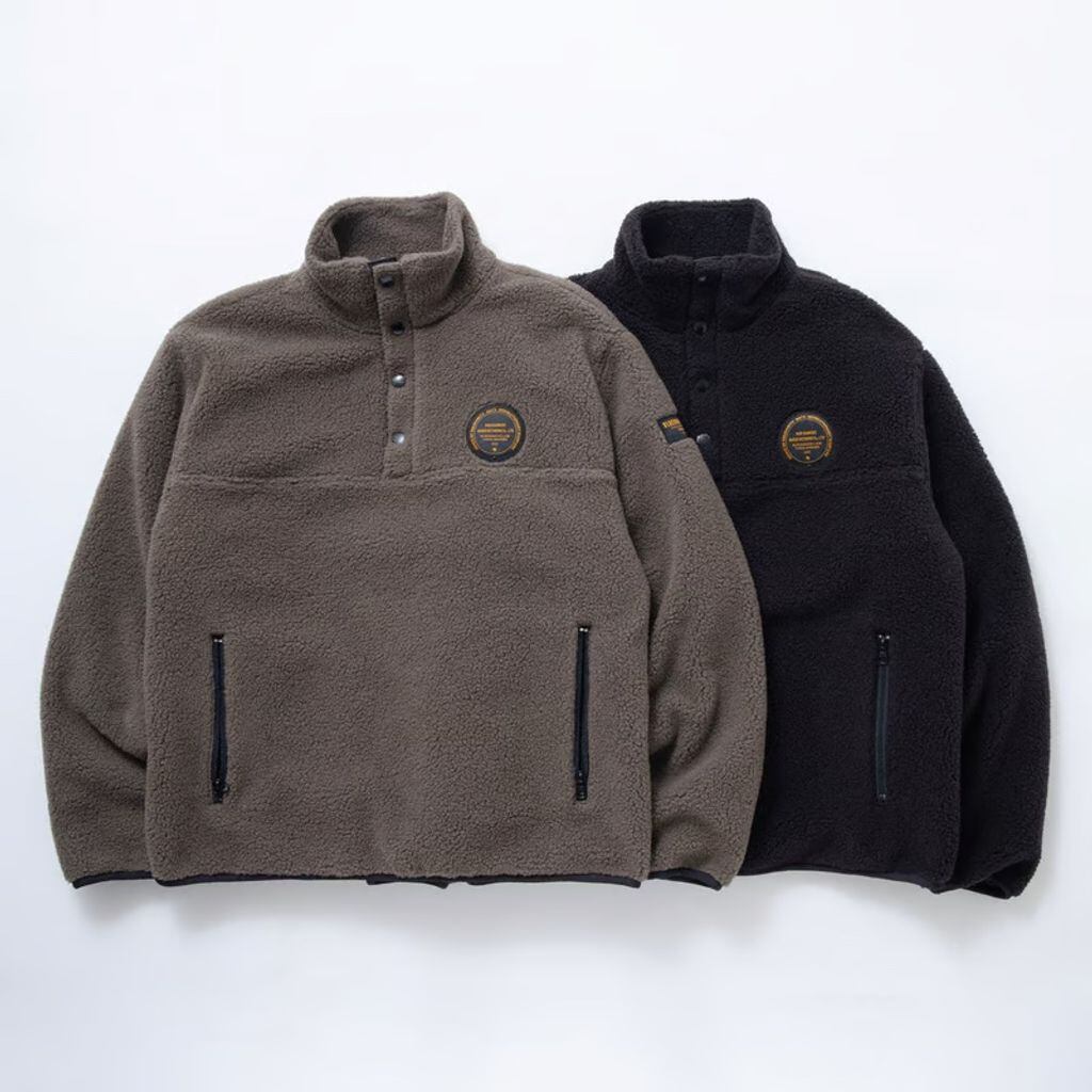 ポリエステル/アクリルの混紡ボア素材を使用したプルオーバーフリース。