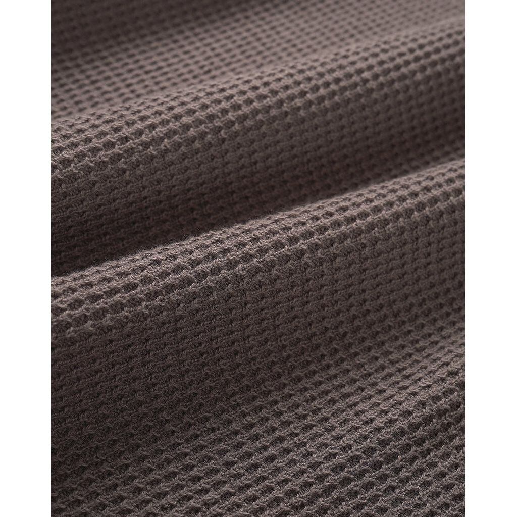 ミリタリーウェアやワークウェアで見られる、生地を2重にし補強と防寒の意味を持つ特徴的なディテールをステッチワークのみで表現したワッフルカットソーです。 生地はふんわりとした軽くソフトな風合いが魅力のローゲージワッフル素材です。 ムラ感のある表面感が特徴的です。 ざっくりとしたサイズ感でニット風のリブも魅力のアイテムです。