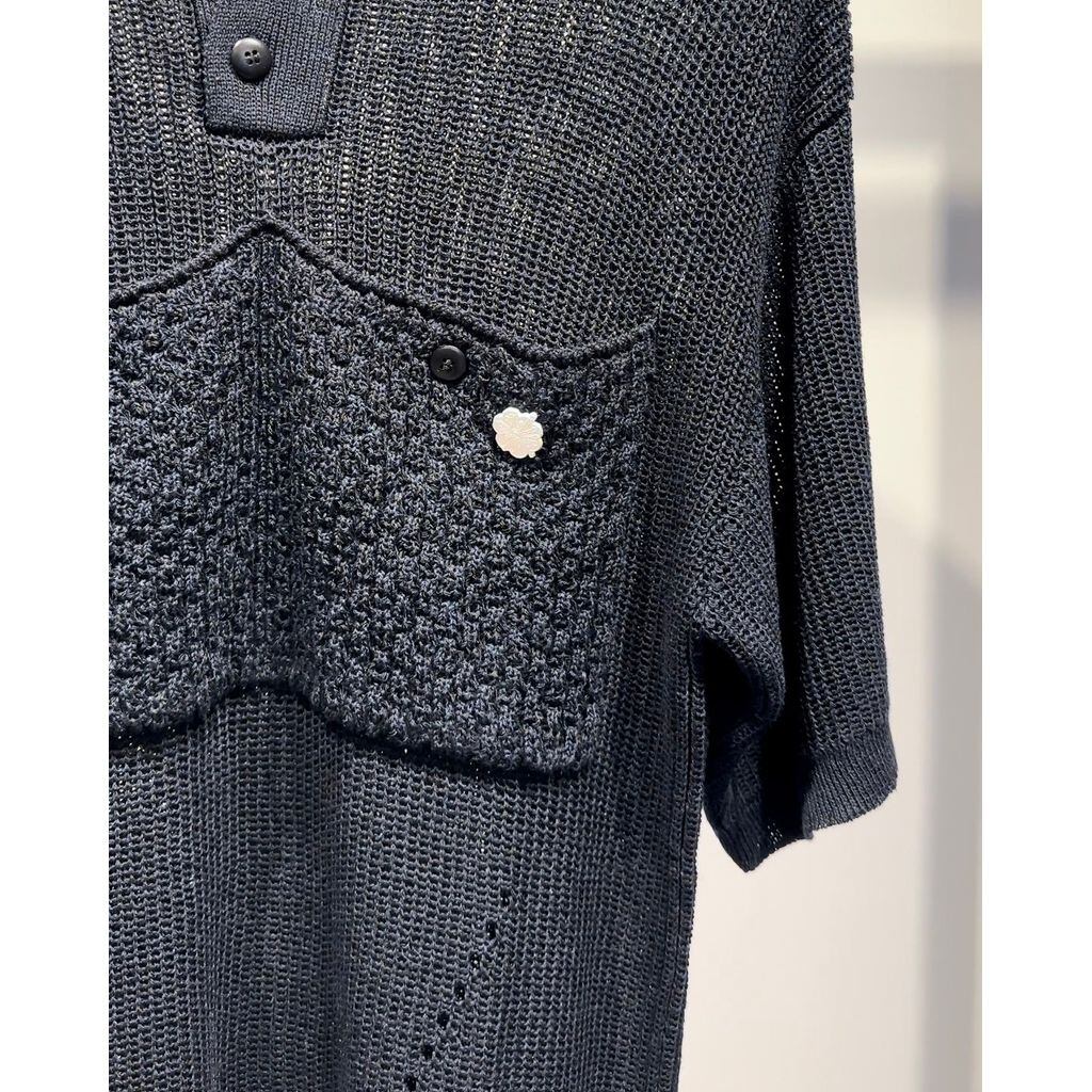 このニットポロは、畦編み技法を使用しポケット部分には立体感のある3D編みが施されている。サイクリングジャージをベースにデザインされ、現代的でミニマルな雰囲気を持っています。シンプルながらもディテールにこだわり上品なカジュア ルスタイルを演出している。