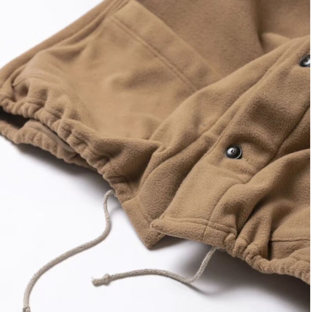 ポリエステル150デニールのマイクロファイバーを使用。やや厚手でソフトな肌さわりのフリース素材です。