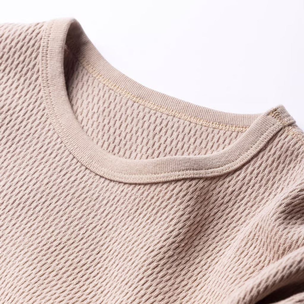 古着からインスパイアされた縦長のハニカム構造は、伸縮性に優れ体に馴染みます。