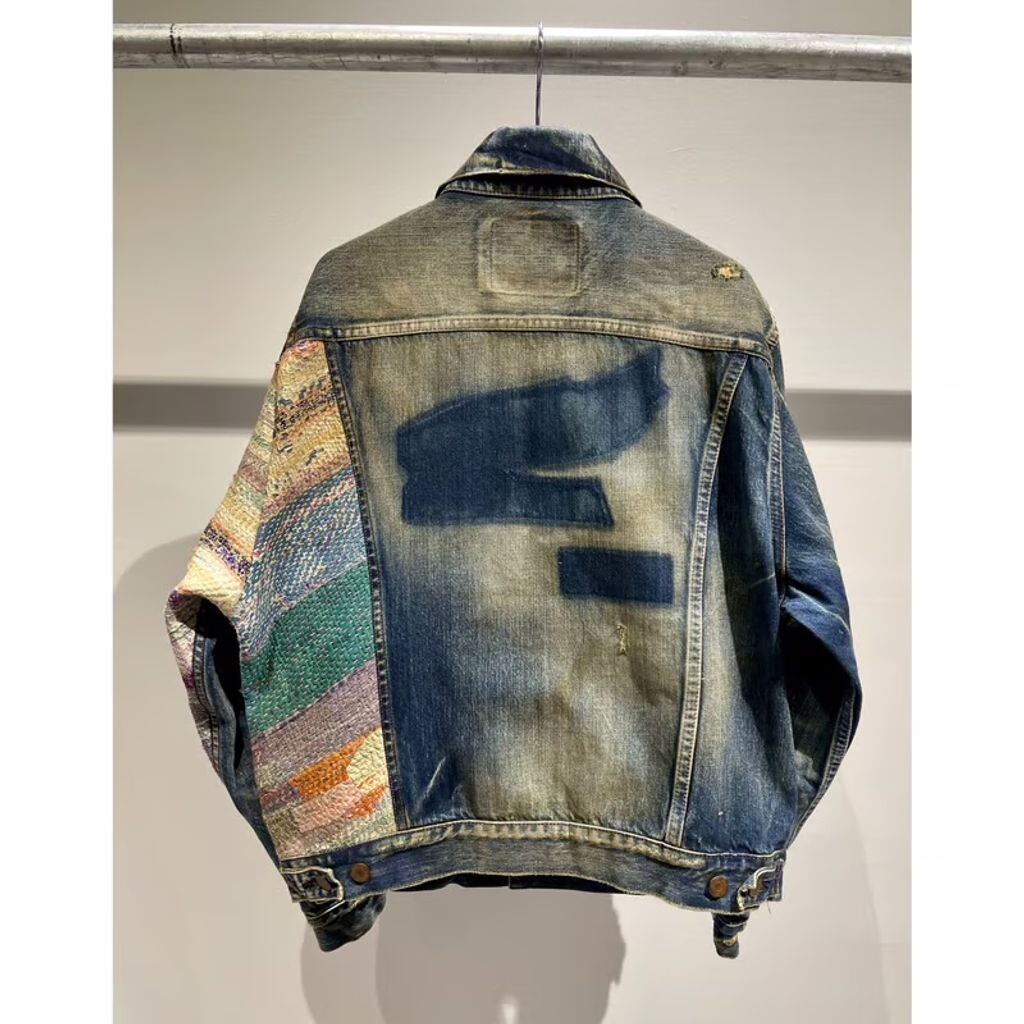 デッドストックのデニムジャケットにヴィンテージのラリーキルトで切り替えたアイテム