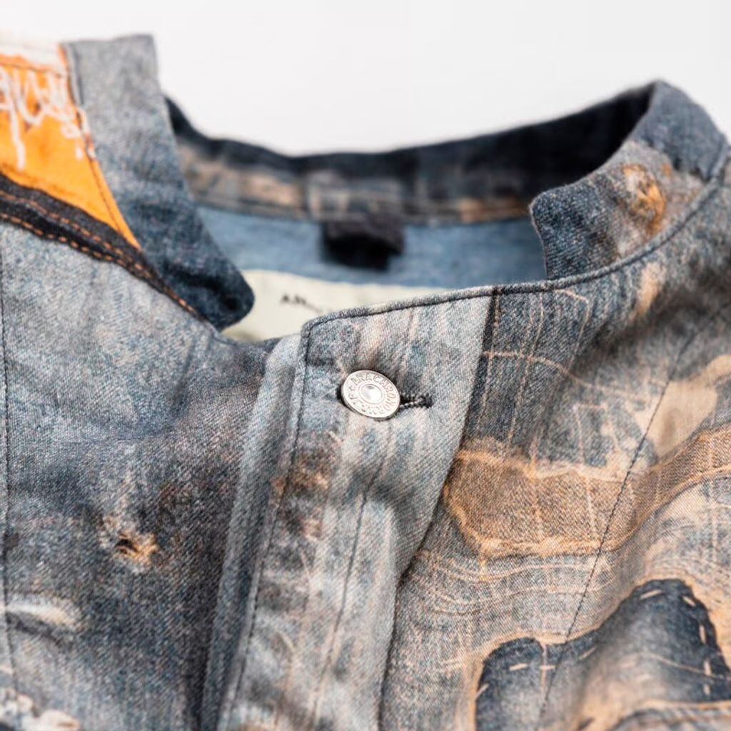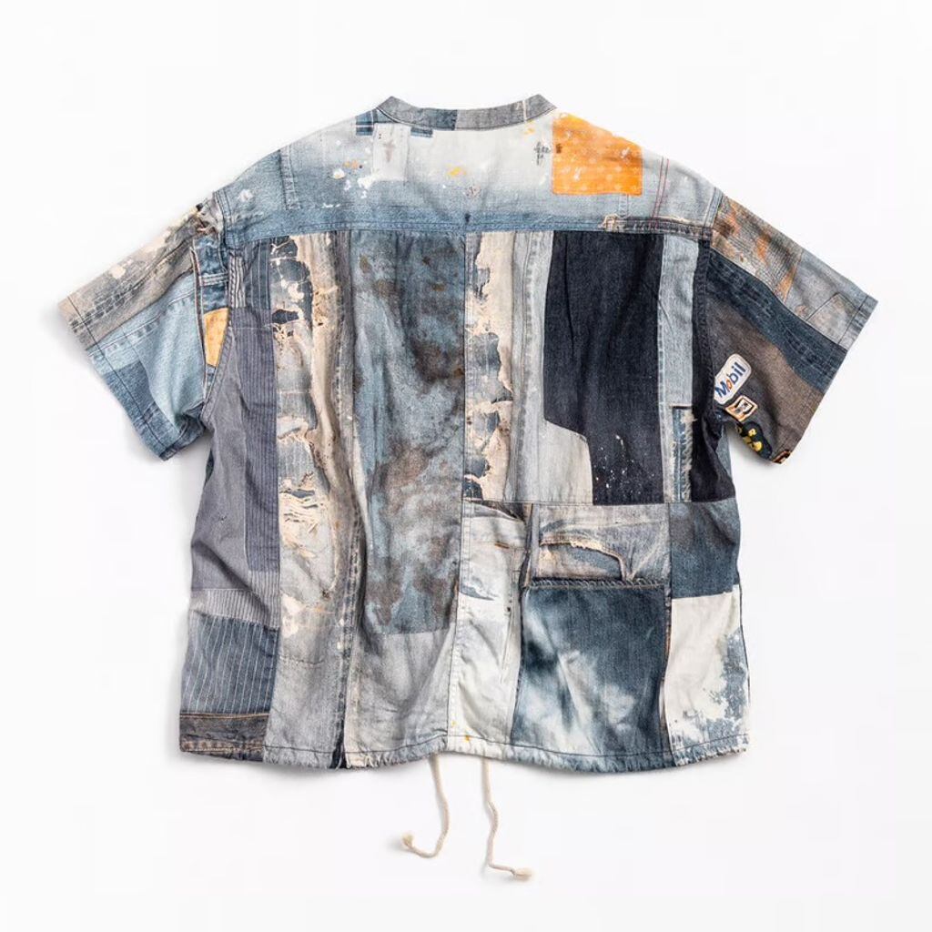 ANACHRONORM AN224 ARCHIVE DENIM COLLAGE STAND COLLAR S/S COVERALL SHIRTS INDIGO