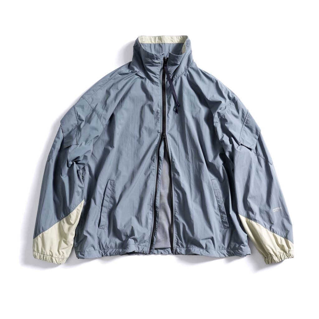 グレー、ブルーは両腕・襟に配色切り替えを施したデザイン。左腕にPERTEXロゴをラバープリント。両裾にスピンドルを付属、シルエット調整が可能な仕様。