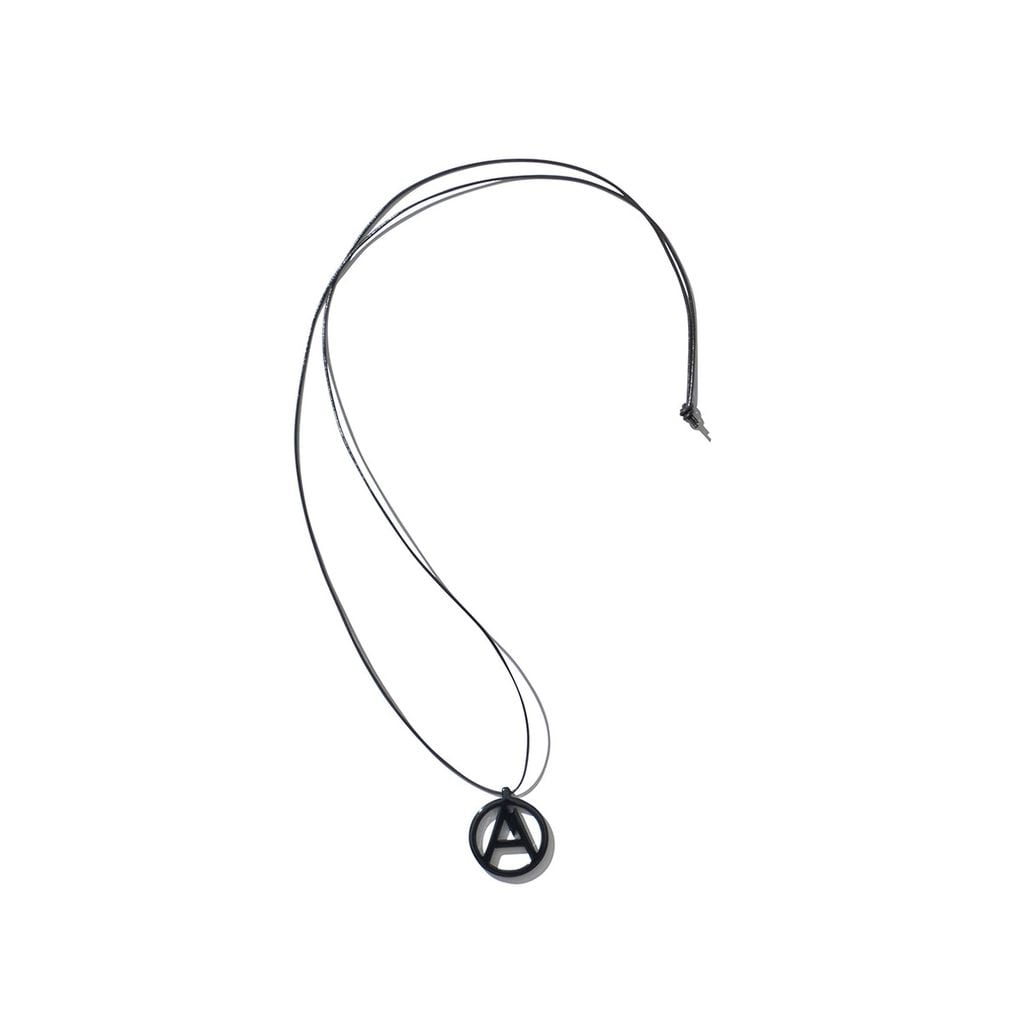 GELCHOPのunreleased作である”A”マークの赤オブジェ(「水源の森」のレセプションカウンターでおなじみ)をミニチュア化させたアクリルのアクセサリー。こちらは革紐のペンダント。